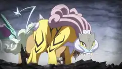 In I Choose You!, Ash, Verity, and Sorrel saw a Raikou as they approached Mount Tensei, but it disappeared before they could get a better look.