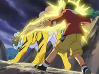 After defeating Attila and Hun, Raikou was still injured and when Jimmy offered to help him, Raikou fired some electricity at him. With his Typhlosion protecting Jimmy from anymore electrical blasts, Raikou allowed Jimmy to help him recover. Raikou was taken to a Pokémon Center where he would recover. After Raikou was fully healed, he escaped the Pokémon Center and went after Attila and Hun again. The crystal once again proved to be a challenge for Raikou.