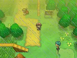 Rains falls heavily, at a lower angle than normal rain. It is found occasionally on Route 212 and Exeggutor Island.