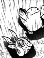Slowpoke yawns and forms a dark cloud that pours rain. | ||
