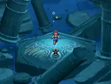 The dais is first seen underwater at the start of the game after the player has been shot down by the Pokémon Pinchers. After falling underwater and losing their Capture Styler, they chase a Mantyke to obtain it back. The Mantyke then ends up leaving it at the dais, where the player picks it up before they move away because of the approaching submarine.