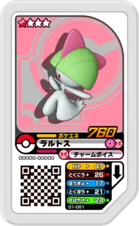 Ralts (Japanese: ラルトス Ralts) is a Grade 1 Pokémon Ga-Olé disk. It is part of the first set.