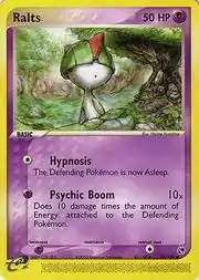 Ralts (Japanese: ラルトス Ralts) is a Psychic-type Basic Pokémon card. It was first released as part of the EX Sandstorm expansion.