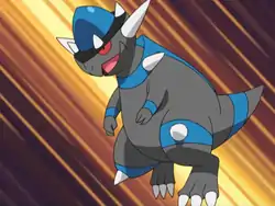 A Rampardos was used by a Team Galactic Grunt against Hiori and company during their final assault on Team Galactic's base in Breaking Into The Enemy's Lair!. It battled Lily's Leafeon, compensating its weakness to Grass-type attacks with super-effective moves of its own.