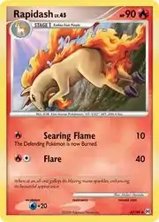 Rapidash (Japanese: ギャロップ Gallop) is a Fire-type Stage 1 Pokémon card. It is part of the Arceus expansion.