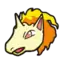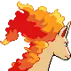 Rapidash is an equine Pokémon with cream-colored fur and a pointed horn on its forehead. It has small, red eyes and triangular ears with reddish interiors. Yellow and reddish-orange flames stream from the back of its head to form a long, flowing mane. A short version of the mane trails down its back to its equally fiery tail. Flames are also present on its fetlocks. It has slender legs, each with a single black hoof.