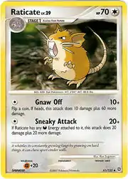 Sneaky Attack's Japanese name is that of Sucker Punch, a move in the Pokémon games that Raticate can learn. This card's Pokédex entry comes from Pokémon Diamond and Pearl.