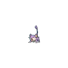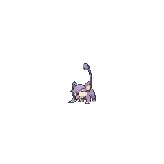 Rattata can live wherever it can find food, which it searches for most of the day. Thanks to its sharp fangs, it is able to chew on nearly anything. When it is threatened, Rattata can deliver a powerful bite. Its large teeth are also useful when using its former signature moves, Hyper Fang and Super Fang. Rattata constantly keep their ears up and will immediately scurry away from the slightest sound. Furret is the natural predator of Rattata. Its hardiness lets it live in many environments, although it mainly lives on plains and savannas. Because it reproduces so quickly, a pair of Rattata can quickly colonize an area.