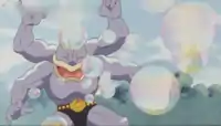 | Machamp was seen battling Ash's Squirtle and was quickly defeated by Squirtle's Bubble Beam.