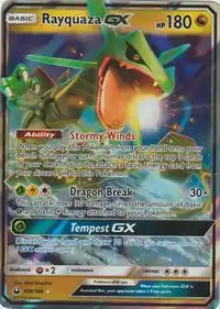 Rayquaza (Japanese: レックウザGX RayquazaGX) is a Dragon-type Basic Pokémon-GX card. It was first released as part of the Celestial Storm expansion.