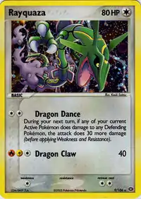 Rayquaza (Japanese: レックウザ Rayquaza) is a Colorless-type Basic Pokémon card. It was first released as part of the EX Emerald expansion.