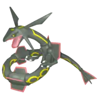 A Sky High Pokémon. It normally resides high up in the ozone layer where it flies endlessly, so it is rarely seen. However, when Groudon and Kyogre began to fight, it appeared to calm them down. It has the ability Air Lock, which blocks all weather-condition effects. It has exceedingly strong abilities, and its attack power is especially remarkable.