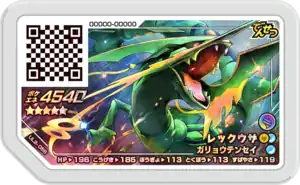 Rayquaza (Japanese: レックウザ Rayquaza) is a Grade 5 Pokémon Ga-Olé disk. It is part of the second Ultra Legend set.
