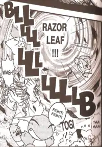 - Razor Leaf is among the three attacks enhanced into "new" moves in the Pokémon Adventures manga, the others being Thunderbolt and Thunder. It also has the longest name of a "move" in any media, being titled by Diamond as "Razor Leaf Dia Special Mach One and Only."