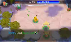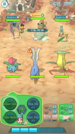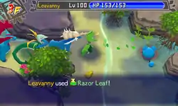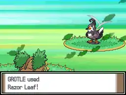 In battles with multiple opponents, Razor Leaf targets all adjacent foes. Razor Leaf will also destroy grass patches found in the background of battles.