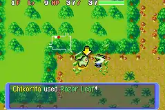 | Chikorita waves the leaf on its head and multiple razor-sharp leaves come out of it at the opponent. | |||