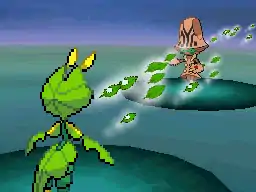 | Turtwig fires razor-sharp leafs from its leaflet onto the opponent. | |||