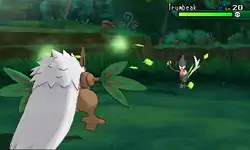 Rowlet fires multiple razor-sharp leaves from its body at the opponent. | ||