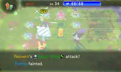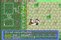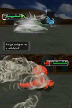 In Red Rescue Team and Blue Rescue Team, and Explorers of Time, Darkness and Sky, Razor Wind is a move with 16 base power, 100% accuracy, and 13 PP, attacking enemy in the front, cutting corners; this move's damage is doubled at the end of damage calculation. Due to being a two-turn move, this move cannot be linked. This move has an increased critical hit ratio.