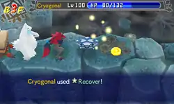 In Red Rescue Team and Blue Rescue Team, and Explorers of Time, Darkness and Sky, Recover is a move with 12PP. Upon use, the user heals themselves by ½ of their max HP. This move is affected by Snatch and Taunt.
