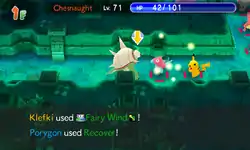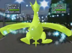 Latias's whole body glows yellow and all of the damage on her body disappears. | ||