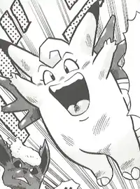Clefairy found a bottle that gave him magical powers. This bottle was originally Alakazam's as he dropped it and it rolled outside. Using those powers, Clefairy had the power to control anything. When he accidentally started a fire in an alleyway, he used his powers to put it out but it made the fire even worse and Clefairy ran away. He summoned a group of Blastoise to do it and the fire was put out. The actions Clefairy did recognized him as a hero by the press. He thought about what he can do since he is a supernatural being and could control anything. As a train was coming by, Clefairy stood on the tracks and tried to stop it but failed. Alakazam then told Clefairy as it was riding the train that the powers have been worn off. Clefairy finally returned to Pallet Town and he, Red and Pikachu were recognized by the whole town. Giovanni then appears on TV and announced that he was going to blow up Pallet Town with a missile. When Giovanni launched the missile, Clefairy launched one of his own and clashed with Giovanni's. As Clefairy was on the missile, it ended up blasting him away, which saddened Red. However, he jumped off the missile in the last second prior to the explosion. After a hard landing, Clefairy got a Marill and stuffed it in a bag. He then went to a motorcycle shop and bought himself a motorcycle. Clefairy rode back to where Red and Pikachu were as he got jealous of them having fun without him. The Marill escaped from the bag and Clefairy followed it to Johto.