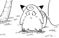 The trio go to Mt. Moon and a Snorlax who resides there gives directions to where the Moon Stone is after Clefairy asked for where it was. Snorlax tells them that it is in Cerulean City where Misty is. They head Cerulean City where they meet Misty and find the Moon Stone. However, Misty requests a battle and Clefairy goes up. He changed his mind when his opponent is a Blastoise but goes back in after Misty mocks him and Red. Clefairy fights Blastoise's water blasting strategies by sucking up the river water, he turns gigantic and spits it back onto Blastoise, winning Red the battle, the Moon Stone and the Cascade Badge. As Red was about to get the Moon Stone, a Mew comes by and takes it which led the trio in chasing after it. Clefairy had too much trouble with finding Mew since he kept on finding other things instead. After finding the Mew which was in an abandoned water mill, he along with the group meet Bill who was transformed into a leopard and his wife was transformed into a Mew. Seeing Clefairy, Bill decides to use him in one of his experiments but his wife stops him before he could do so. Afterwards, Clefairy battles Green's Charmander who evolved straight into Charizard when Green decided to catch Bill's wife who was a Mew at the time. Clefairy, using a firemen's uniforms, battles Charizard who becomes stronger than Clefairy expected. Clefairy has Bill shrink Charizard in order for Clefairy to have a fair advantage but Clefairy got shrunk too since he didn't leave the machine in time. Due to that, Green decides to stop catching Mew. Clefairy along with group than watch when Bill and his wife change back into humans. When Bill's human form was revealed to be hideous in appearance, Clefairy and the group run away in fear.