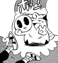 Red gets a letter from the mailman and shows it to his Pokémon. Clefairy got excited that the letter is an invitation and it will feature stuff that he likes. However, this made Pikachu and Tyrogue want to correct him and Clefairy brought out the Avalokiteśvara statue. Afterwards, he gets into a fight with Tyrogue and Pikachu, but Red did not interfere. After the battle, the group turned back to normal with Clefairy feeling depressed. He goes on a train and Red, Pikachu and Tyrogue run after him. Clefairy arrived to a Japanese restaurant but was still sad when he got inside. Later, when the group woke up, they noticed Clefairy's curl straightened out. Clefairy ended up taking advantage of it by treating it as a long arm. It came in handy when the group rescued a child from drowning in a flowing river. While Clefairy was playing with his curl, a Beedrill attacks him and he punches it away with the curl. However, this made several more Beedrill come and sting him, which made the curl bigger and prevented it from straightening out again.