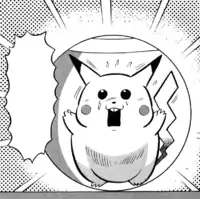 Pikachu appeared along with Red and Clefairy in Lights, Camerupt, Action!. The three characters appeared in one of Ash's favorite films. Much like the manga, it appears to be the only Pokémon around that isn't able to talk.