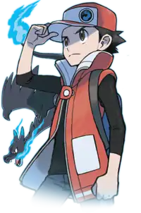 Red (Japanese: レッド Red) is a Pokémon Trainer in Pokémon Masters EX, based on the character of the same name in the core series. In his sygna suit form, he forms a sync pair with Charizard, which is capable of Mega Evolving. This sync pair was first made available on February 28, 2020. This pair can be raised to 6★ EX from August 28, 2020.
