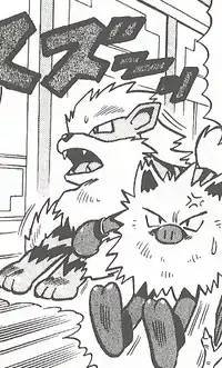 | Arcanine was first seen along with Pidgey and Primeape where it joined Red for the Pokémon League. During Red's match against Green, he sent it out and after a gag fight with Green's Pokémon, it along with both sides, were knocked out, leaving them with one Pokémon left.