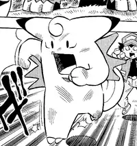 | A Clefable along with Raichu and Hitmontop went to Red after Red's Clefairy, Pikachu, and Tyrogue left the area to get some supplies. Red mistakened Clefable to have evolved from Clefairy. Unlike Clefairy, Clefable became more helpful as it helped Croagunk pull some supplies. Clefable had a battle with a wild Mamoswine where Mamoswine got the upper hand. As Mamoswine was about to finish Clefable, Clefairy, Pikachu, and Tyrogue returned, revealing to Red that Clefairy didn't evolve.