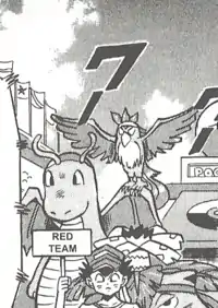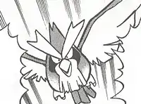 | Articuno is a legendary Pokémon that was mentioned by Professor Oak while he was contacting Red. In the next chapter, he attempts to catch it and succeeds with a Master Ball. Articuno reappeared in Red VS Green!! where it was a participant in a soccer match. It served as a goalie throughout the game.