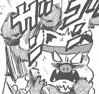 Red owned another one in The Pokémon Banana League (Part 1) where it along with Arcanine and Pidgey joined Red for the Pokémon League. During Red's match against Green, he sent it out and after a gag fight with Green's Pokémon, it along with both sides, were knocked out, leaving them with one Pokémon left. None of Primeape's moves are known. | ||
