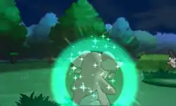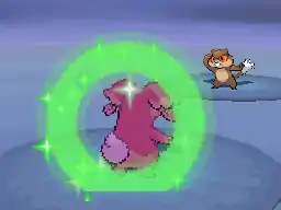 | Alomomola's body glows green. Waves of energy come off it, and the target becomes fully healed. | |||