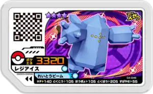 Regice (Japanese: レジアイス Regice) is a Grade 4 Pokémon Ga-Olé disk. It is part of the fourth Dash set.