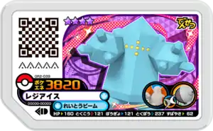Regice (Japanese: レジアイス Regice) is a Grade 4 Pokémon Ga-Olé disk. It is part of the second Grand Rush set.