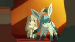 | Glaceon (Japanese: ミーチェ Micie) is Regina's only known Pokémon. Micie is very protective of Regina, using Blizzard on Regina's classmates if they were bullying her or asking her lots of questions. Later, Glaceon helped create an ice castle and ice rink in the grounds of Vermilion City school for the students to play on. Sometime later, Micie was shown battling a Victreebel and winning. | ||