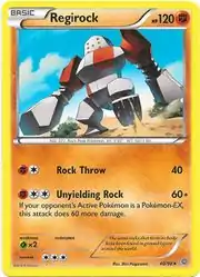 Rock Throw is a move in the Pokémon games that Regirock can learn. This card's Pokédex entry comes from Pokémon Y.