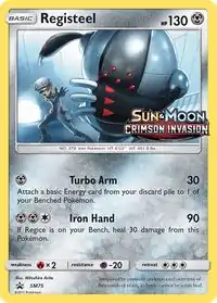 Registeel (Japanese: レジスチル Registeel) is a Metal-type Basic Pokémon card. It was first released as part of the Crimson Invasion expansion.
