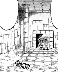 The entrance to Relic Castle appeared in To Make a Musical, where Ryoku of the Seven Sages prepared to enter the ruins in order to find and catch Volcarona for Ghetsis.