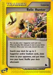 Relic Hunter (Japanese: 遺跡ハンター Remains Hunter) is a Supporter card. It is part of the Skyridge expansion.