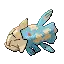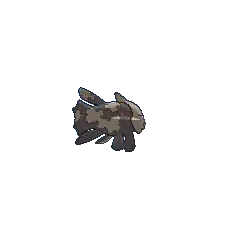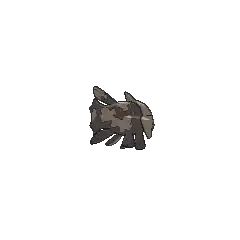 Relicanth is a Pokémon that is heavily based on the coelacanth. It is covered with hard, brown scales that are similar to craggy rocks. Its tan head has protruding cheekbones, which are smaller on a female. A triangular spike protrudes from the back of its head. Tan patches cover its body and there is a red spot located on both sides. It possesses two pairs of pectoral fins, which it uses to push itself along the sea bottom. Additionally, it has dorsal and pelvic fins near its tail. Its tail fin has a wavy outline.
