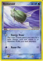 Remoraid (Japanese: テッポウオ Teppouo) is a Water-type Basic Pokémon card. It is part of the EX Team Rocket Returns expansion.