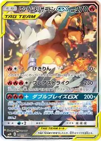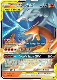 Outrage is a move in the Pokémon games that both Reshiram and Charizard can learn, the latter via TM39. Double Blaze is the name of the Japanese expansion in which Reshiram & Charizard-GX was first released.