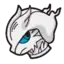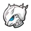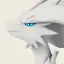 Reshiram is a white, bipedal Pokémon with draconic, avian, and mammalian traits. A long, voluminous wispy mane streams out from the upper side of the snout and outwards from its head. The top of this mane is adorned with two protrusions, which resemble ears. Reshiram's face is fringed with spiky features, and it has a small, pointed extension below the chin. Its eyes have blue irises and black pupils. There are two pairs of pointed teeth visible when its mouth is open, one in the upper jaw and one in the lower.