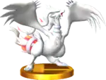 Reshiram appears on the Unova Pokémon League stage. When it appears, it starts a fire on the stage, damaging fighters.