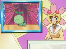 In All Dressed Up With Somewhere To Go!, Rhonda served as the announcer of the Pokémon Dress-Up Contest, an annual event organized by the members of the Pokémon Fan Club. For the competition, she dressed up as a Cherrim.