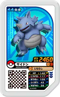 Rhydon (Japanese: サイドン Sidon) is a Grade 2 Pokémon Ga-Olé disk. It is part of the fourth Ultra Legend set.