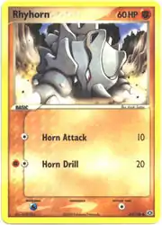 Rhyhorn (Japanese: サイホーン Sihorn) is a Fighting-type Basic Pokémon card. It is part of the EX Emerald expansion.